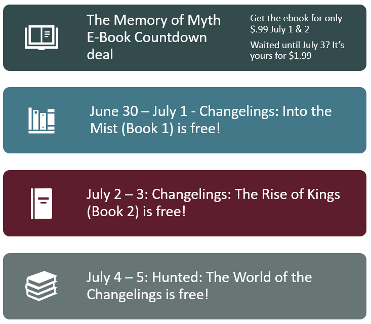 Today and tomorrow (June 30 and July 1) only, every digital edition of the Changelings series is FREE on Amazon! Not only that, but you also get to enjoy another ‘deleted scene’ from The Memory of Myth – removed only because Maureen tended towards too many stream of conscious musings and the ideas presented could easily be introduced in other – more ‘active’ ways!